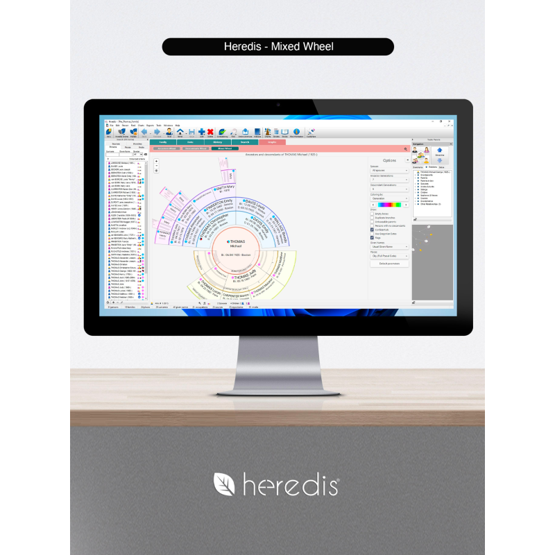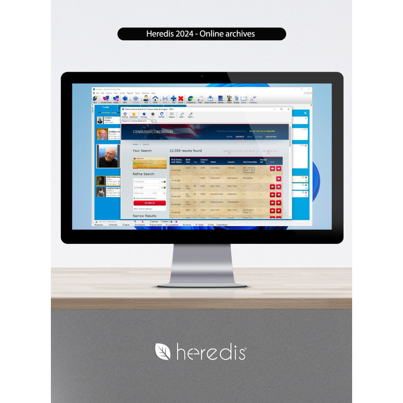 - Share your work: publish your genealogy free of charge on Heredis Online to share your findings with the genealogy community or only with family members by privatizing your site with a password, create a GEDCOM export or import one, etc.